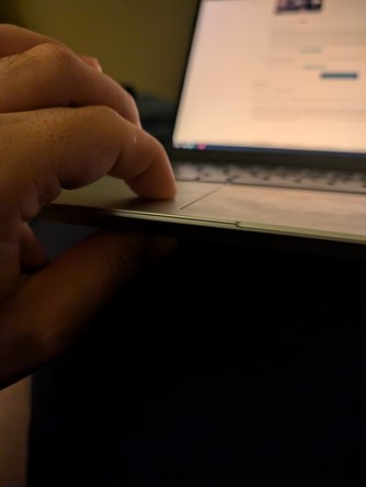 The effect is even greater when, instead of squeezing the area next to the touchpad against the bottom surface, you squeeze against the little edge/lip of the bottom surface.